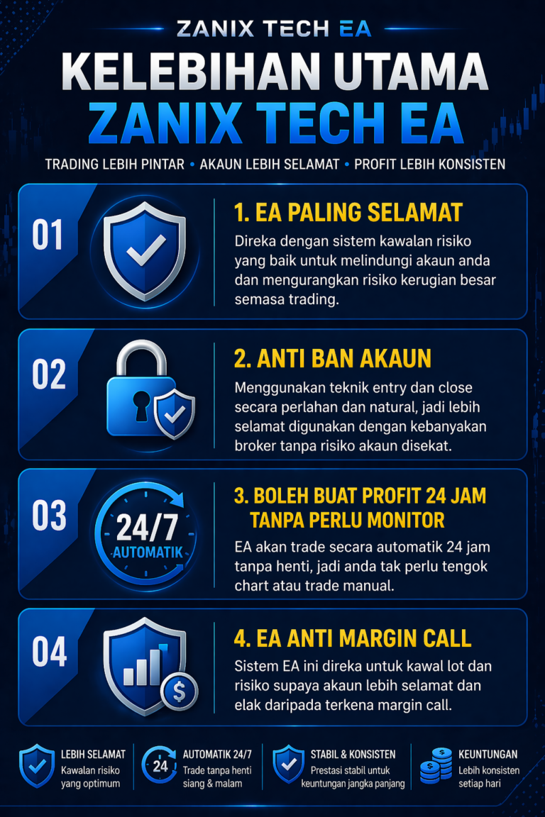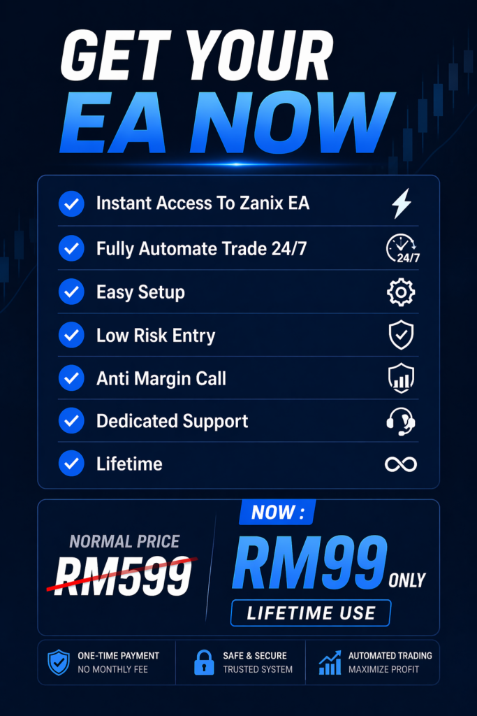 Lupakan stress trading ZANIX TECH EA bekerja untuk anda 24 jam, bantu trade dengan lebih konsisten